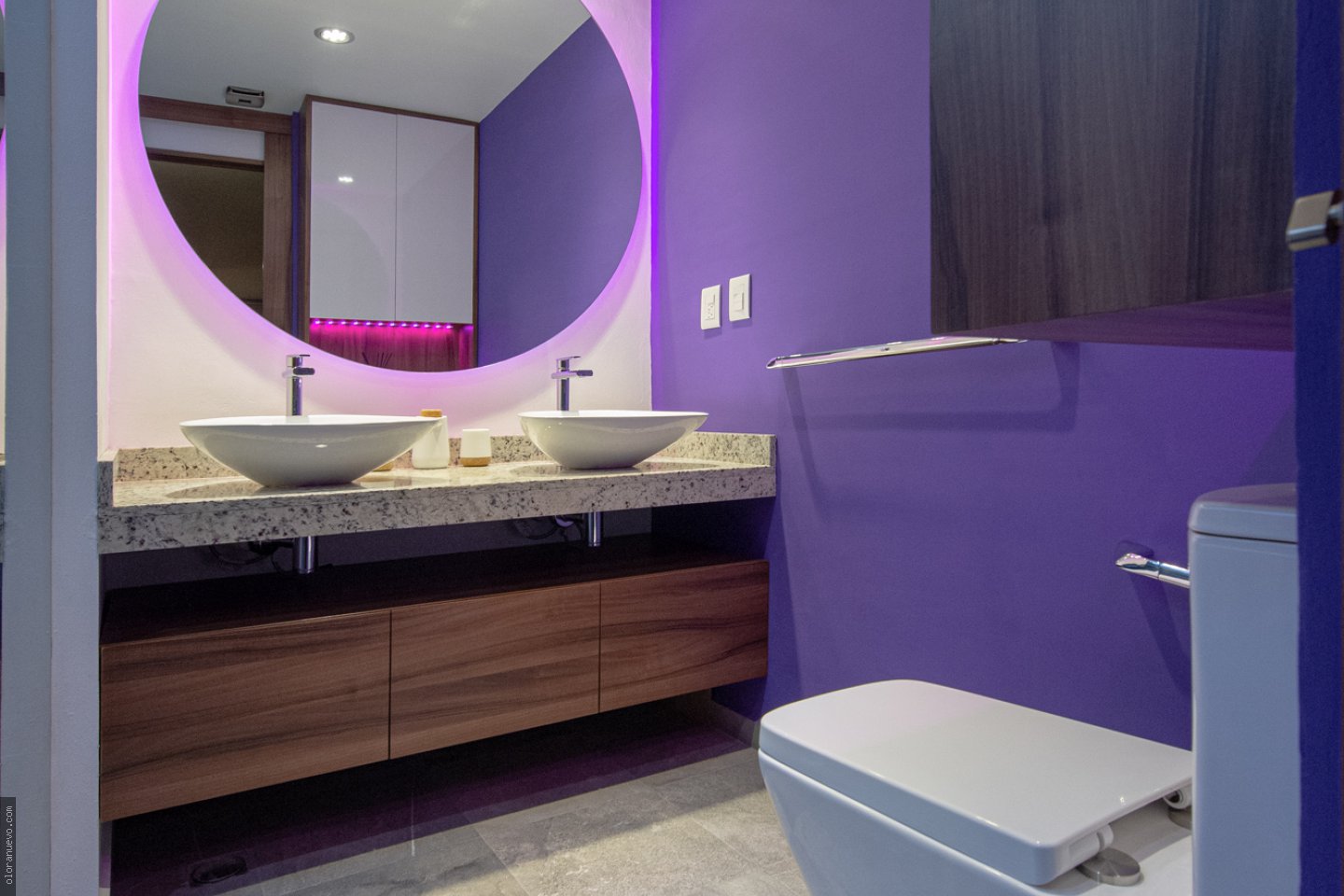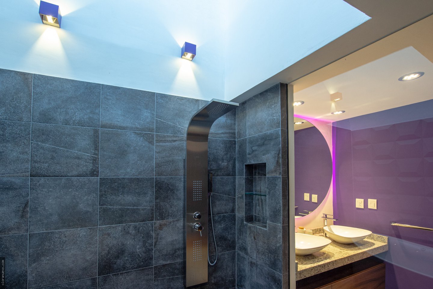 Nos hemos enfocado en transformar un baño convencional en un espacio moderno y elegante. Con una paleta de colores llamativa que resalta, con el mobiliario y acabados.